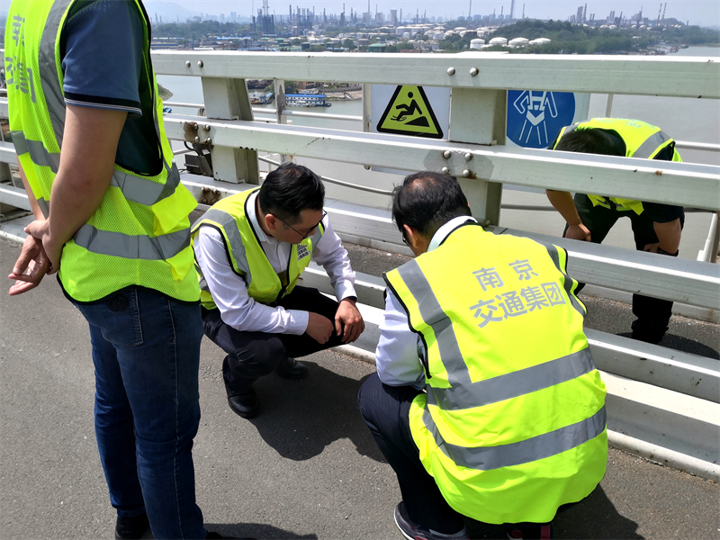 期間,調(diào)研團隊前往南京棲霞山長江大橋(南京四橋)進行了實地參觀交流。雙方針對跨江大橋的養(yǎng)護管理工作進行了探討,對大橋養(yǎng)護經(jīng)驗和共性問題進行了意見交換,并對高速公路傳統(tǒng)行業(yè)數(shù)字化轉(zhuǎn)型升級工作方向和思路進行了深入交流。調(diào)研人員現(xiàn)場觀摩了南京四橋主橋橋面雨污排水系統(tǒng),該系統(tǒng)從環(huán)保角度設(shè)計,能夠針對?;沸孤┰跇O短時間內(nèi)做到關(guān)閉泄水孔,防止長江污染。