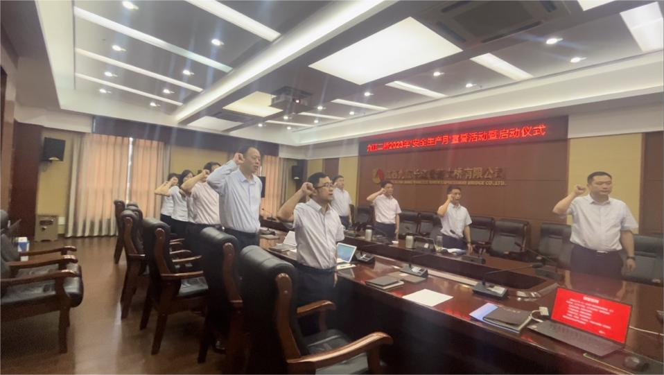 為認(rèn)真貫徹落實(shí)習(xí)近平總書記關(guān)于安全生產(chǎn)的重要指示批示精神,按照集團(tuán)公司和路橋板塊安委會關(guān)于“安全生產(chǎn)月”活動的決策部署要求,5月31日,九江二橋舉行2023年“安全生產(chǎn)月”活動啟動儀式。公司安全生產(chǎn)委員會全體成員參加,會議重溫了《生命重于泰山》電視專題片,學(xué)習(xí)了習(xí)近平總書記關(guān)于安全生產(chǎn)重要論述。?