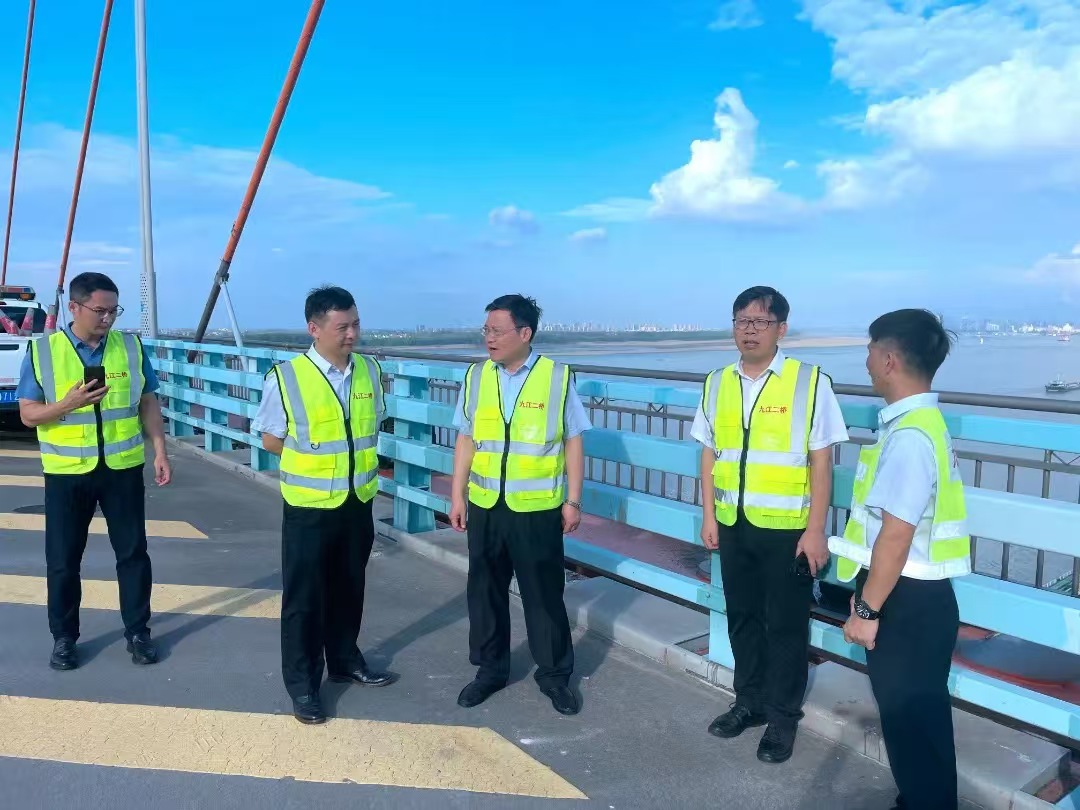 隨后,調(diào)研組一行實地查看了九江二橋數(shù)字化建設(shè)和橋梁運行情況,詳細(xì)了解了該公司“5G+橋梁智慧養(yǎng)護(hù)”“5G+健康監(jiān)測”和“5G+數(shù)智安環(huán)”等各項目平臺的場景應(yīng)用情況及養(yǎng)護(hù)管理工作情況,對九江二橋數(shù)字化應(yīng)用及相關(guān)成果轉(zhuǎn)化給予了肯定。