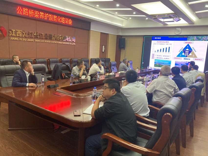 ? ? ? 為提升高速公路橋梁養(yǎng)護(hù)管理水平,確保橋梁運(yùn)行安全和耐久性能,11月14日,九江二橋舉辦了以《公路橋梁災(zāi)害防治與養(yǎng)護(hù)技術(shù)規(guī)范化》為主題的現(xiàn)場(chǎng)培訓(xùn)。此次培訓(xùn)邀請(qǐng)了中交一公院的資深專家進(jìn)行授課,采用線上線下相結(jié)合的方式,公司領(lǐng)導(dǎo)班子及江投路橋各單位相關(guān)部門的50余名代表參加。