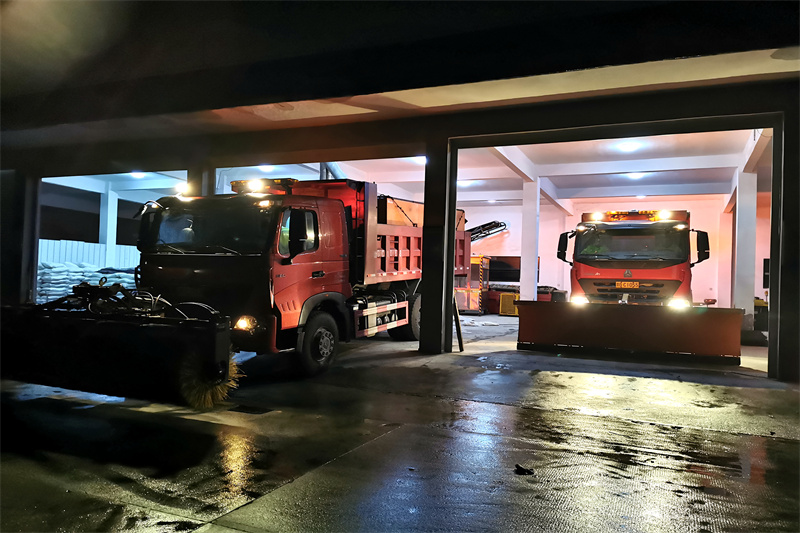 ↑除雪掃雪車發(fā)車上路作業(yè)
