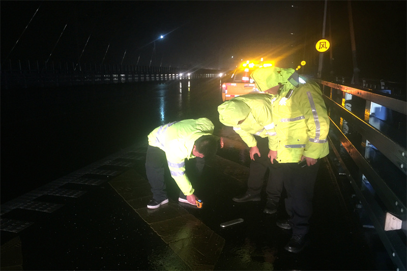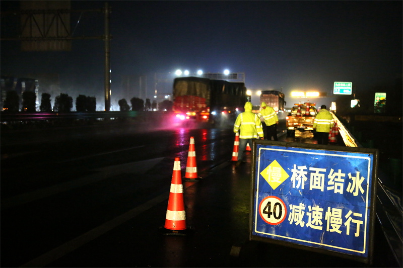 當日23時,第三次人工測量,主橋橋面溫度降至0℃至-1℃,為防止路面結(jié)冰,5分鐘后,搶險救援組立即趕往現(xiàn)場渠化交通;凌晨2時,除冰掃雪車開始上路撒布作業(yè),對橋梁全線撒布融雪劑,安排了清障車輛在公司駐點待命,同時,沿路情報板滾動提示“雨雪天氣,謹慎駕駛”,提醒過往司機注意行車安全。