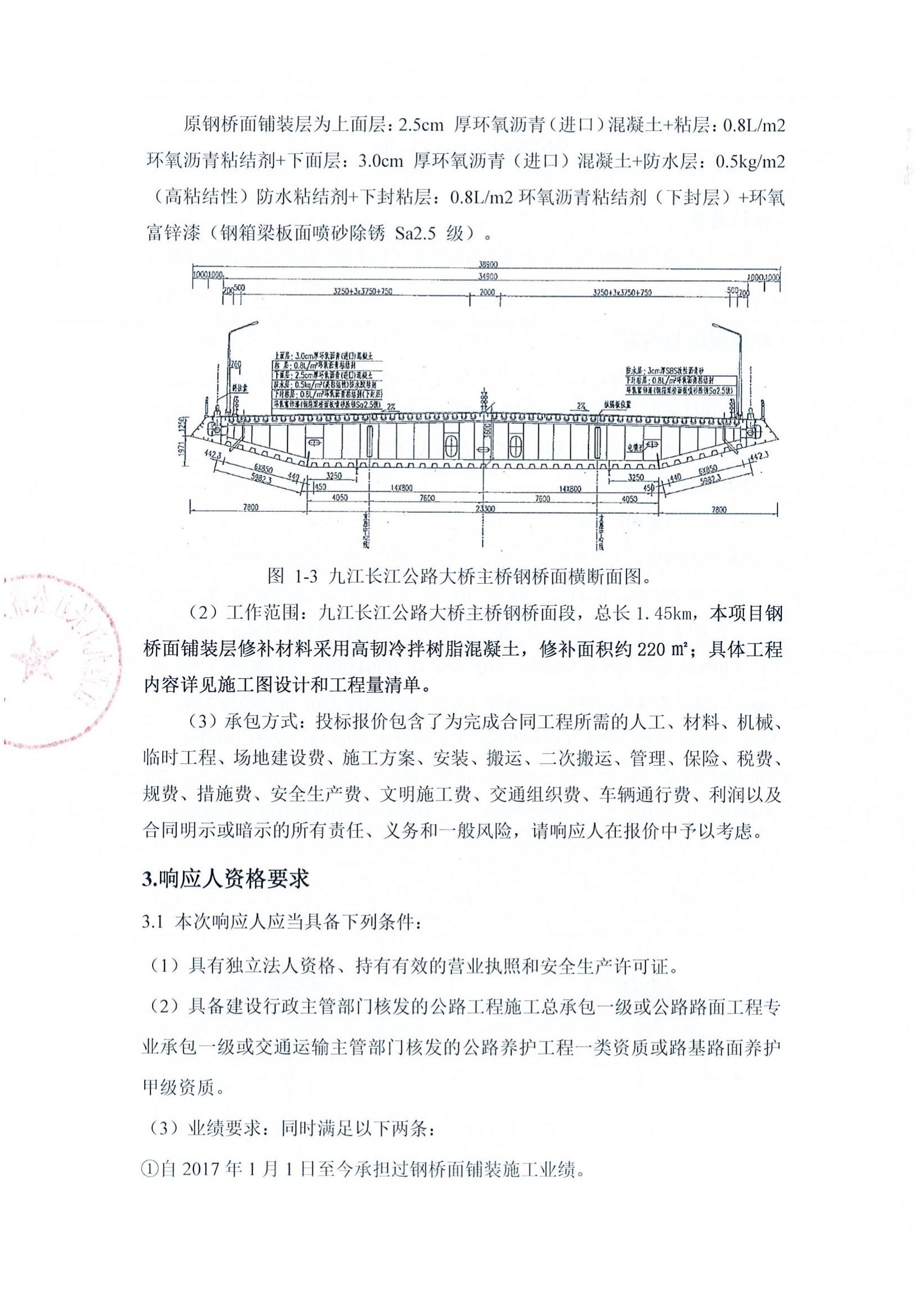 九江長江公路大橋2022年主橋鋼橋面維修工程項目詢價采購公告