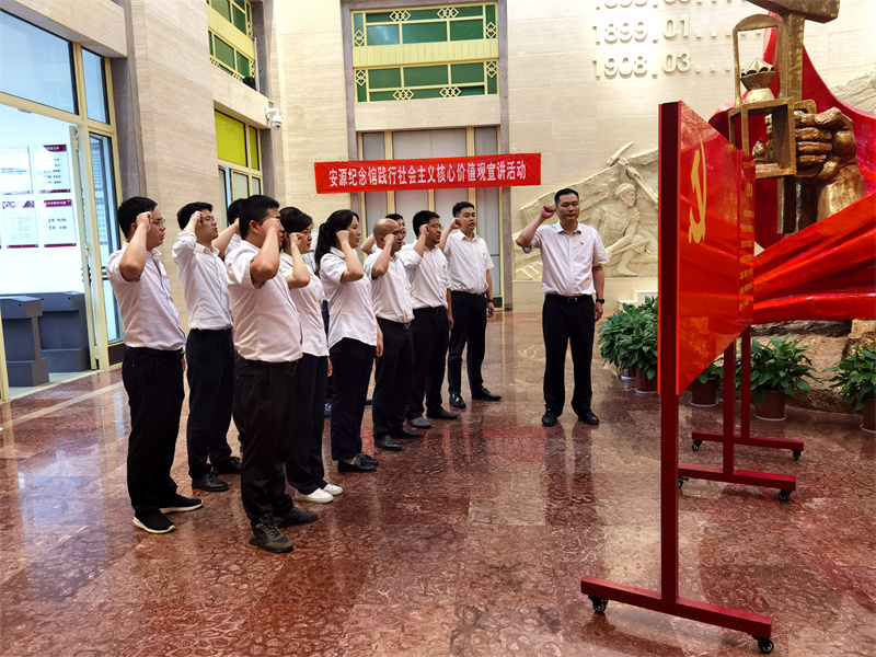 在安源路礦工人運(yùn)動(dòng)紀(jì)念館。“我志愿加入中國(guó)共產(chǎn)黨,擁護(hù)黨的綱領(lǐng),遵守黨的章程,履行黨員義務(wù),執(zhí)行黨的決定,嚴(yán)守黨的紀(jì)律,保守黨的秘密,對(duì)黨忠誠(chéng),積極工作,為共產(chǎn)主義奮斗終身,隨時(shí)準(zhǔn)備為黨和人民犧牲一切,永不叛黨。”全體黨員在館內(nèi)大廳重溫入黨誓詞,誓言鏗鏘,激昂回響。在現(xiàn)場(chǎng)教學(xué)中,館內(nèi)陳列的一張張照片、一段段文字,都在述說(shuō)著安源路礦工人的輝煌斗爭(zhēng)史,大家駐足仔細(xì)聆聽(tīng),不時(shí)發(fā)出贊嘆和感慨。