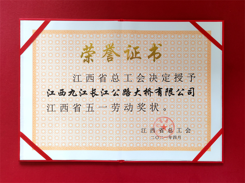 喜訊!九江二橋榮獲“江西省五一勞動(dòng)獎(jiǎng)狀”